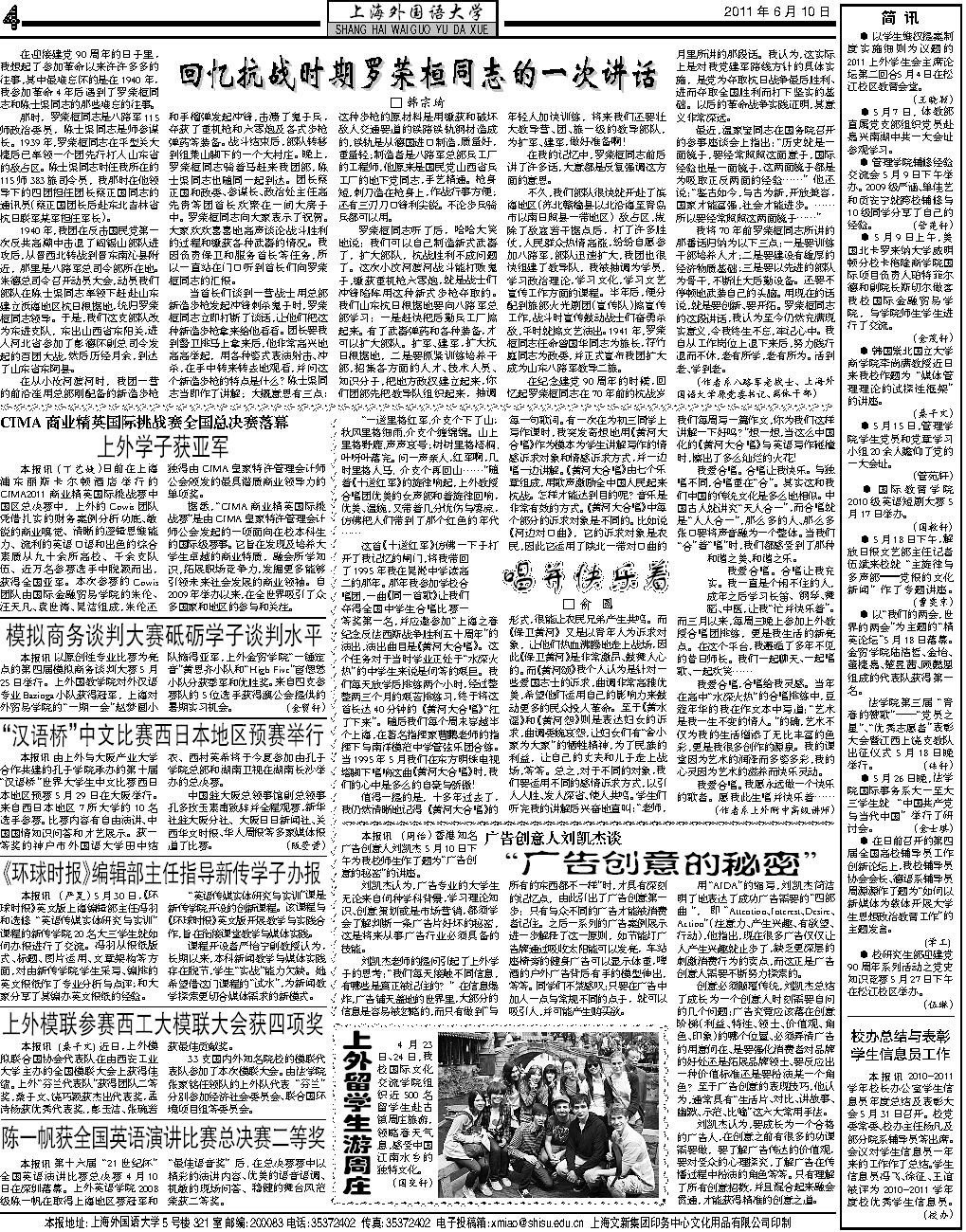 本报讯 (周怡)香港知名 广告创意人刘凯杰5 月10 日下 午为我校师生作了题为“广告创 意的秘密”的讲座。