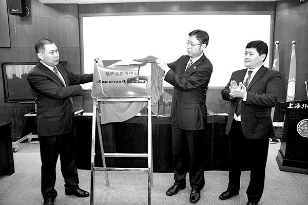 本报讯11月16日,上海外国语大学举行了哈萨克斯坦中心揭牌仪式,这是国内首家致力于哈萨克斯坦社会与文化研究和中哈教育交流合作的学术机构。该中心由上外、哈萨克斯坦驻沪总领事馆和哈萨克斯坦教育科学部国际计划中心共同创立。