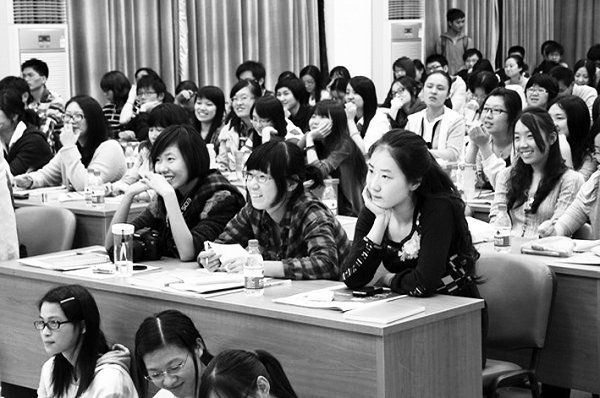由于跑新闻是个“体力活”,一位上外 女生询问:“东早”招收记者时是否会倾向 男生。陆炎直言,“东早”不会对女生有偏 见,“新闻的竞争在于智慧而不是体力。”