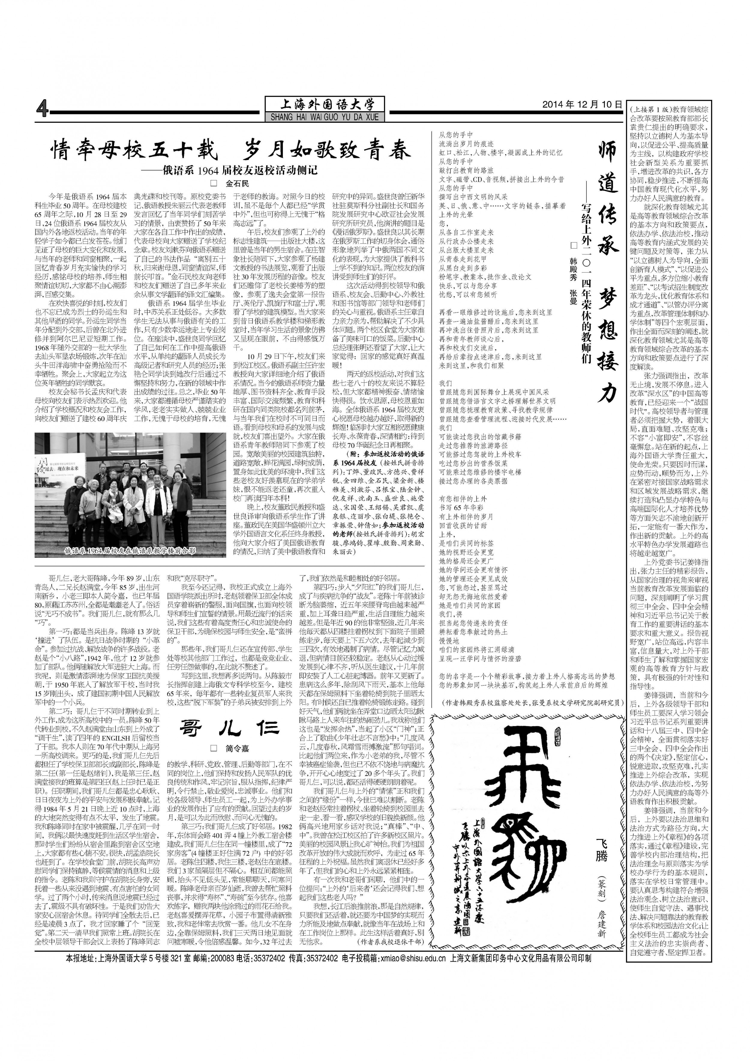 有一次我和老哥们闲聊,他们中的一位提问:“上外的‘后来者‘还会记得我们、想起我们这些老人吗?”