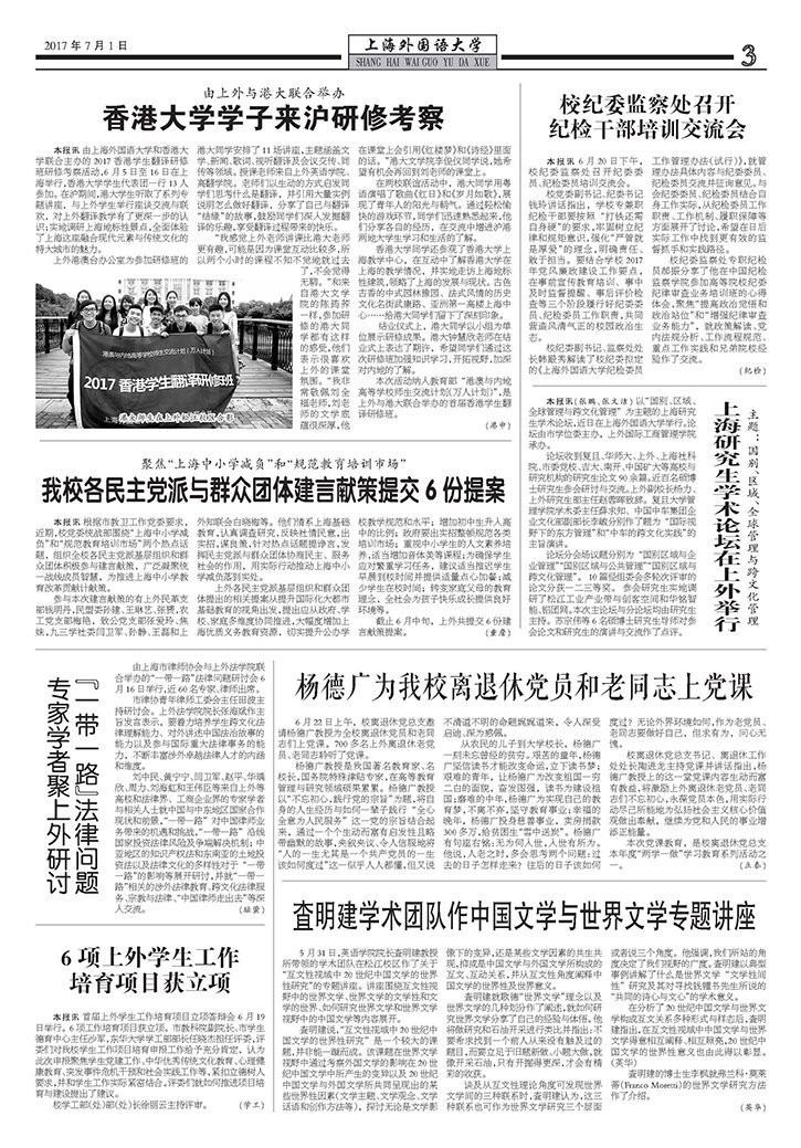 6月22日上午,校离退休党总支邀请杨德广教授为全校离退休党员和老同志们上党课。700多名上外离退休老党员、老同志聆听了党课。
