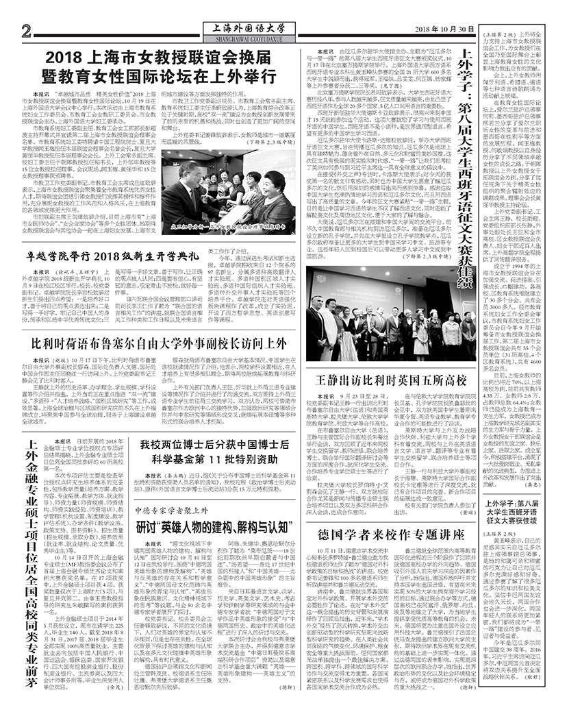 本报讯(赵牧)10月17日下午,比利时荷语布鲁塞尔自由大学外事副校长缪森、国际处负责人戈德、国际处中国合作部主任同晓红一行访问上外。上外党委副书记王静会见了比利时客人。