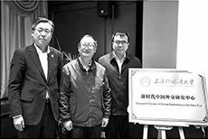 本报讯 习近平新时代中国特色社会主义外交思想学术研讨会暨2018年度国家社会科学基金重大项目“习近平新时代中国特色社会主义外交思想研究”开题报告会,12月22日在上外举行。上外新时代中国外交研究中心当日揭牌成立。(见右图)上外副校长冯庆华主持。校党委书记姜锋、中宣部国际传播局局长赵建国、中联部研究室主任栾建章、上海市社科规划办主任李安方和上海国际关系学会会长杨洁勉致辞。