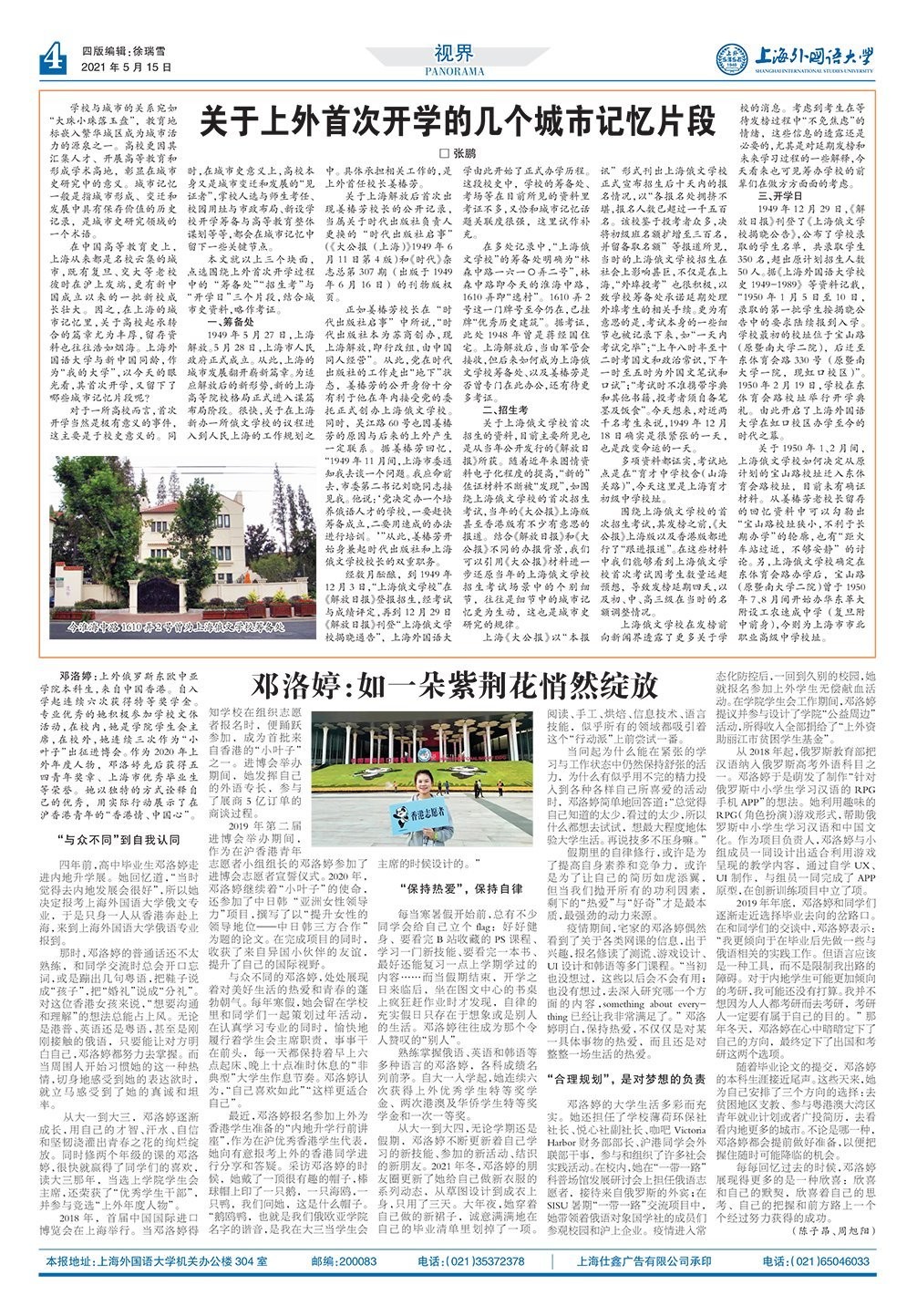 在中国高等教育史上,上海从来都是名校云集的城市,既有复旦、交大等老校彼时在沪上发端,更有新中国成立以来的一批新校成长壮大。因之,在上海的城市记忆里,关于高校起承转合的篇章尤为丰厚,留存资料也往往浩如烟海。上海外国语大学与新中国同龄,作为“我的大学”,以今天的眼光看,其首次开学,又留下了哪些城市记忆片段呢?