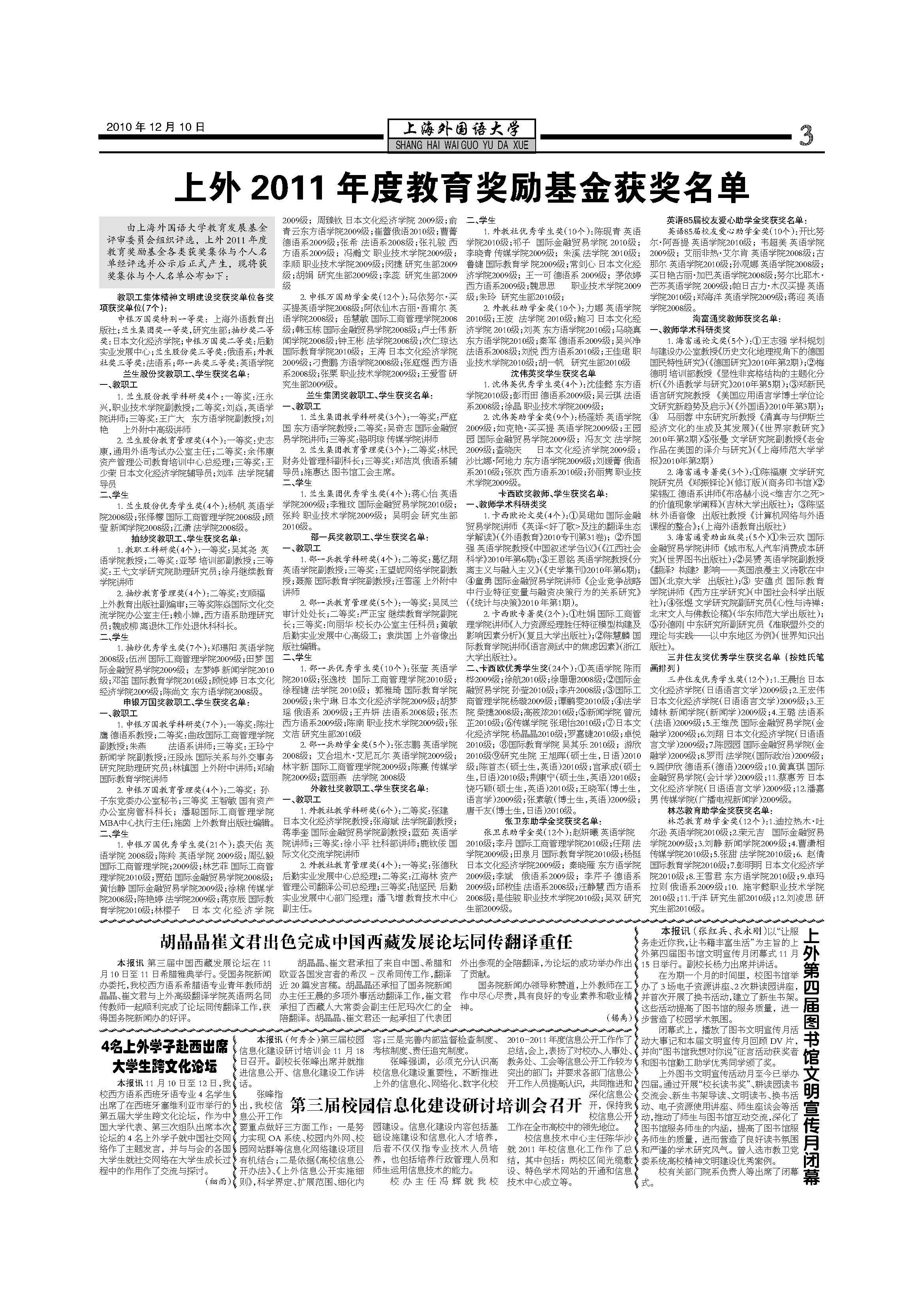 上外2011 年度教育奖励基金获奖名单