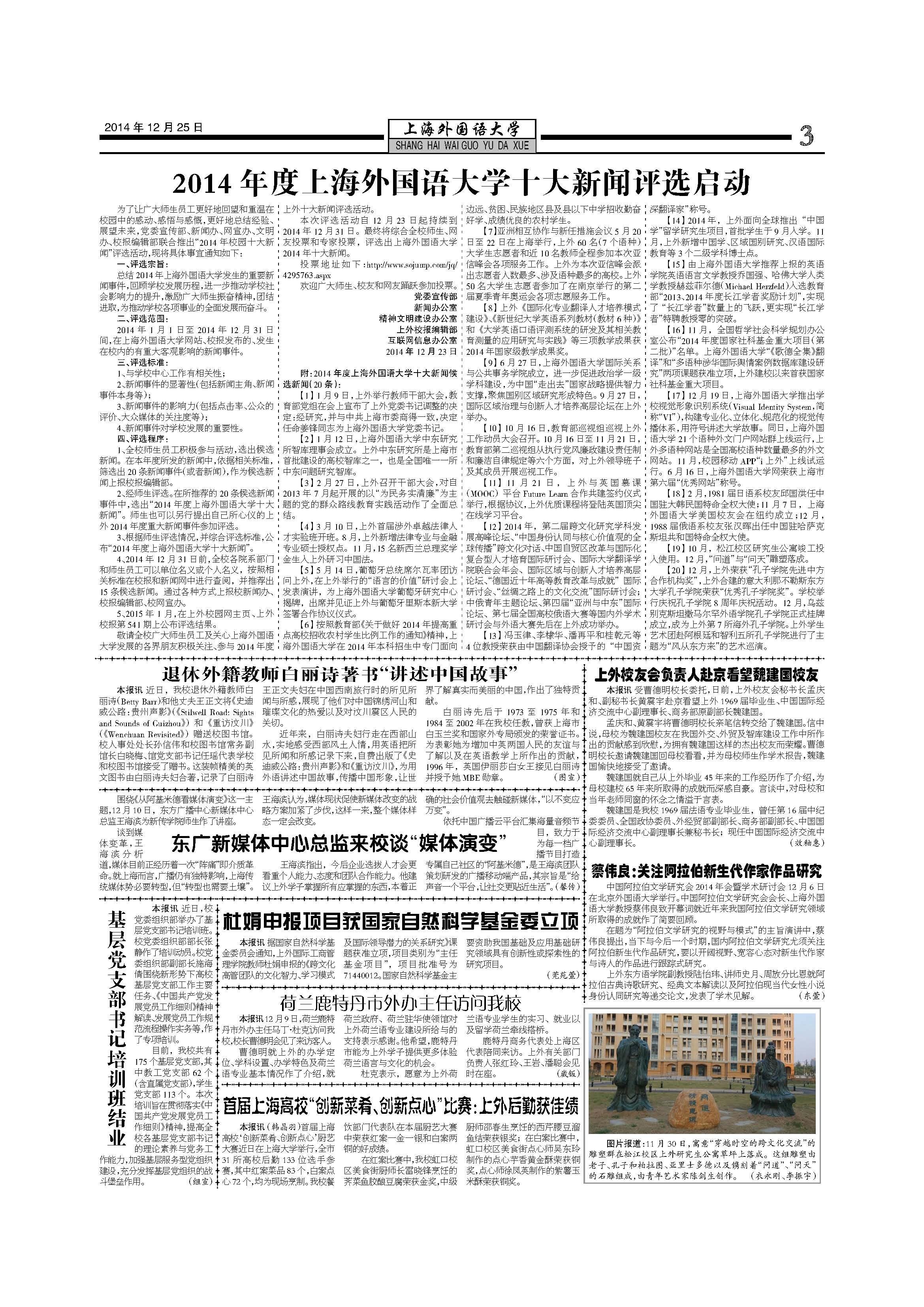 为了让广大师生员工更好地回望和重温在校园中的感动、感悟与感慨,更好地总结经验、展望未来,党委宣传部、新闻办、网宣办、文明办、校报编辑部联合推出“2014年校园十大新闻”评选活动,现将具体事宜通知如下: